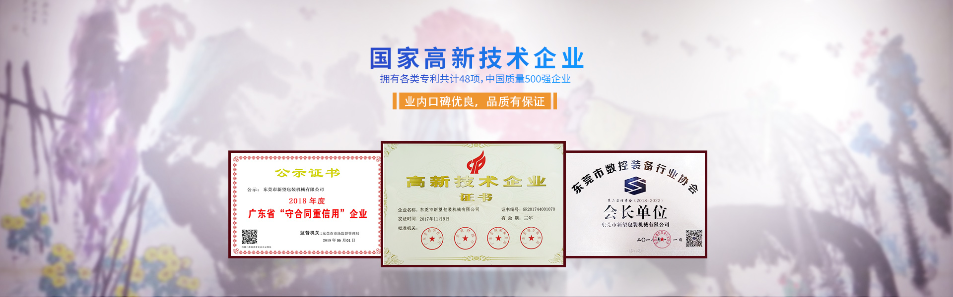 新望機械成立于1998年,位于東莞市東部工業(yè)園區(qū)的中心地帶——企石鎮(zhèn)東平村,交通方便、環(huán)境優(yōu)美舒適、視野開闊。公司注冊資本2000萬元,擁有辦公室、廠房等18,000多平方米。已通過ISO9001:2015國際質(zhì)量管理體系認證,擁有國家各類專利共計58項。是東莞市企石鎮(zhèn)工商聯(lián)副會長單位、東莞市企石鎮(zhèn)文學藝術(shù)界聯(lián)合會副主席單位、東莞市環(huán)保包裝行業(yè)協(xié)會副會長單位、東莞市數(shù)控裝備行業(yè)協(xié)會第二屆會長單位、廣東省包裝技術(shù)協(xié)會常務理事單位、廣東省膠粘劑行業(yè)協(xié)會理事單位、廣東省著名商標企業(yè)、國家高新技術(shù)企業(yè)。